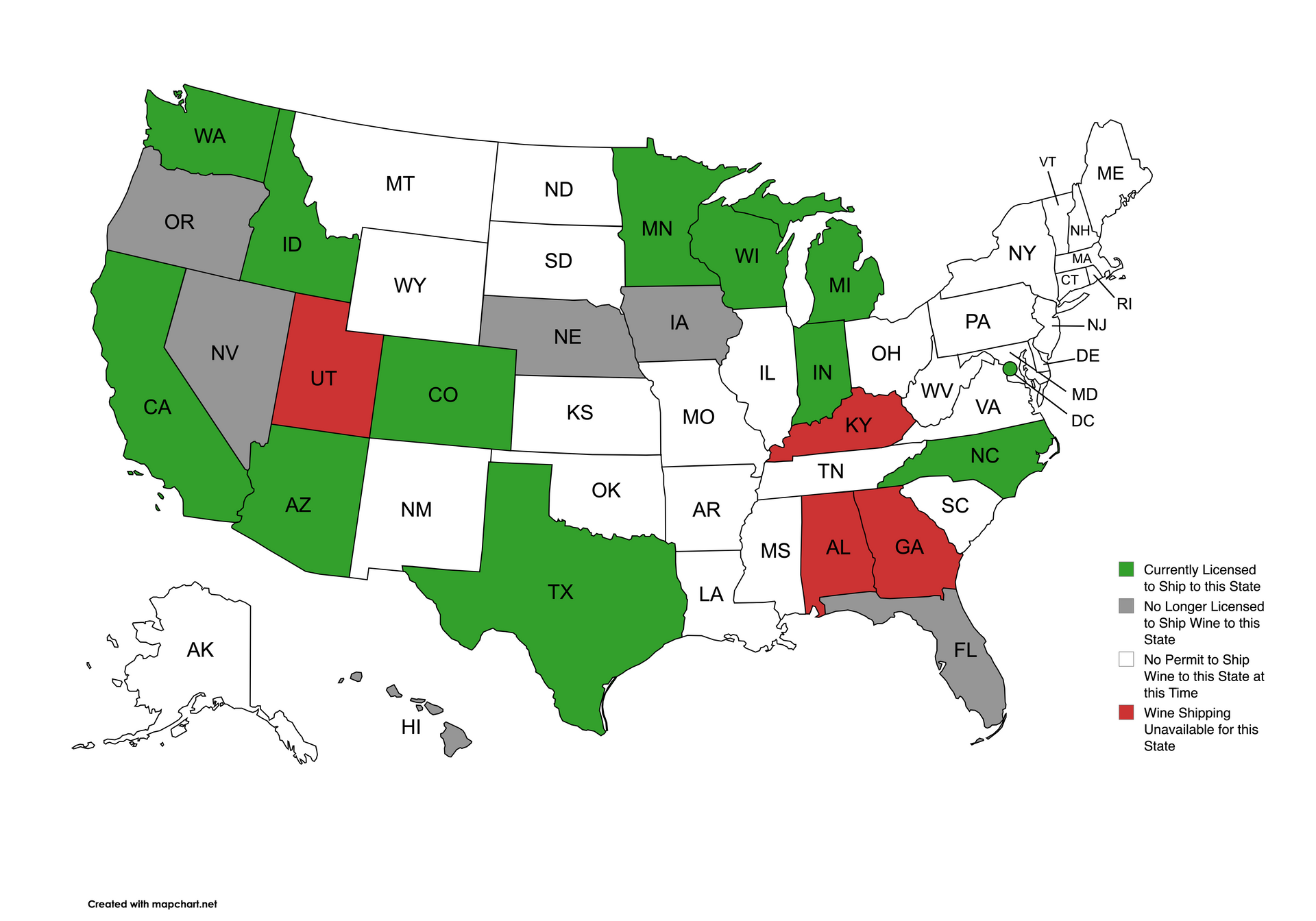 States that are not highlighted with any color are States for which we have no permit to ship to at this time.